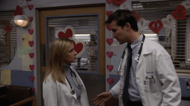 Yet, even with my deep knowledge and connections to all 331 episodes, the most powerful, most memorable, or as one reviewer described it, the most brutal masterpiece, was the Valentines attack on Dr Carter (Noah Wyle) and Med Student Lucy Knight (Kellie Martin). When I binge all 15 seasons, I patiently wait for that 6th season, and when the episode starts, I anxiously wait for the song “Battleflag,” by Low Fidelity Allstars to start in those those final two minutes. It’s like one of those books you never get tired of reading: I know exactly what is about to happen as Carter walks in to blast Lucy, only to get stabbed in the back by the schizophrenic patient, dropping to the floor as staff party to loud music in the desk area, and sees Lucy lying on the floor on the other side of the room, bleeding, eyes open but unable to say anything…and then they both pass out. That song will ALWAYS be associated with ER, and when I think of the episode, I always hear it playing in the back of my mind. In many ways, it’s such a fleeting scene since we never see Lucy actually getting attacked and before we know it, as Carter is attacked, the episode is over, yet the way they wrote/directed it, and juxtaposed the song with the movements, it was simply brilliant in the most heartbreaking way. As background, the whole episode was full of sadness with doses of humanity (did they throw in operating on Romano’s dog for some levity in the midst of all the death that day?), but as touching and meaningful as the first 46 minutes were, it is all forgotten when two fan favorites are at death’s door. Not to mention the frustration as a viewer with no one listening to Lucy’s concerns or the delay in the psych consult. Kellie Martin was already a favorite young actor from “Life goes on”, so to see her character gone after 1 ½ seasons was a huge loss for devoted ER viewers. I do find it interesting that after almost 24 years, it’s only as I verified spellings that I find out I was not the only one impacted by that episode: numerous commentaries call it the best episode in the series…as it should be.